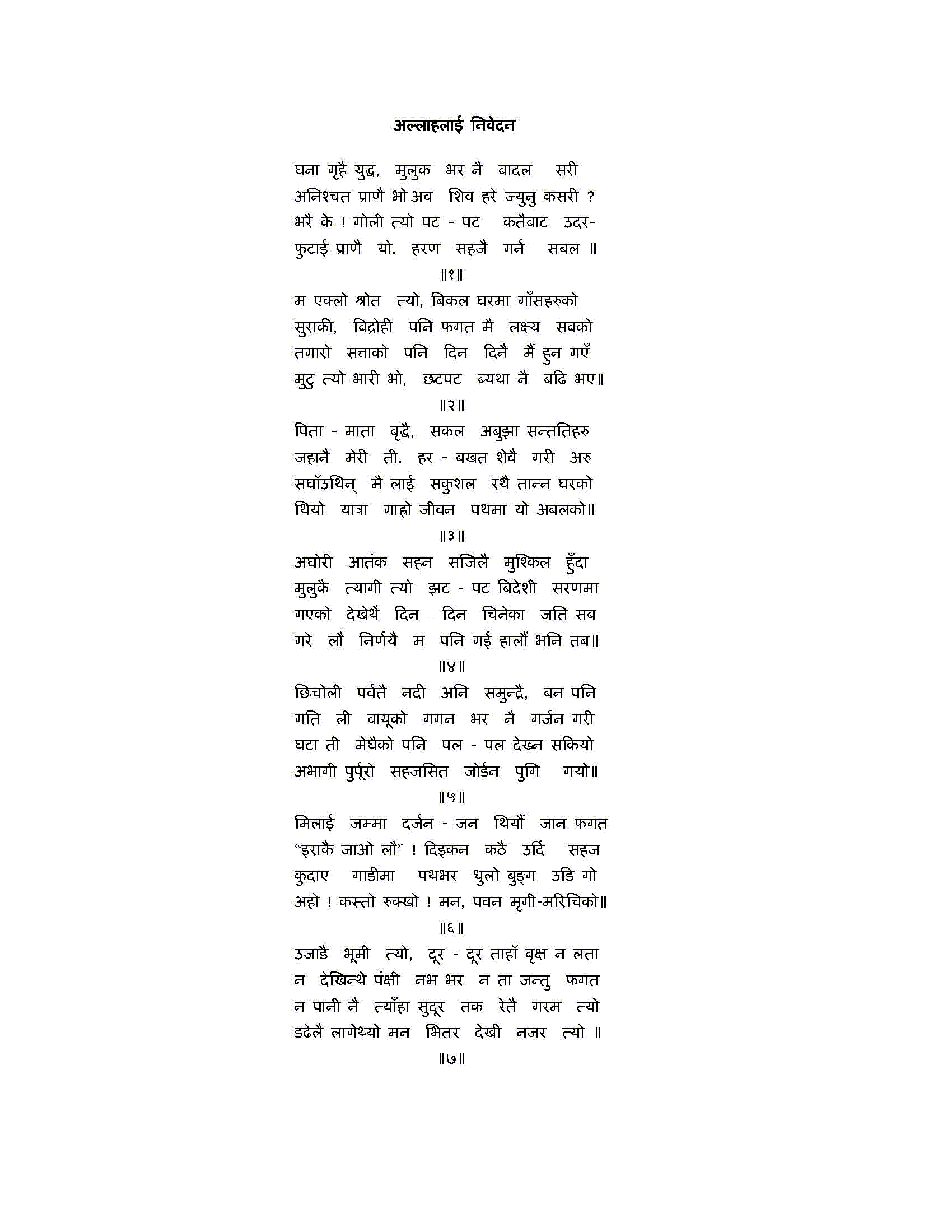 माथिको कविता उल्टो पाल्टो भएछ stanza no अनुसार सच्याएर पढिदिनु हुन अनुरोध गर्दछु ।