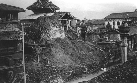 Earthquake 1934: Degutale Temple completely destroyed (Source: www.asianart.com)
