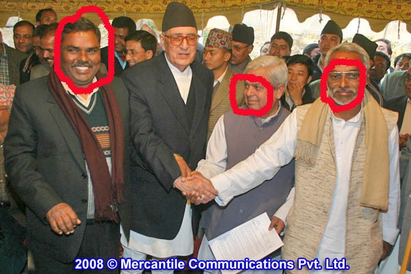 shrivastav, at least he is not laughing. But look at that Bihari upendra. He was in bihar when nepalese were fighting for democracy and loktantra. He was trying his best for hindu atibadi. He even may not know how many people were killed in loktantra movement. now that he figured out some opportunity for creating chaos for his personal benifit he utilized some dumba$$ madishes to sell nepal to India. he asked other few biharis that he can share some profit with them, they also joined him. Upendrea.bihar.com seems to be the happiest among three because he is getting the biggest share whereas other are also thinking that something is better than nothing so they are also happy. Girija seems to have some digestive problem there in the picture