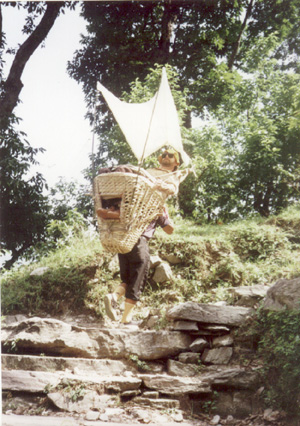 पुल जाद्रै जो हल्लिनी केरे, तेसो भएर लालेले पुल सम्मन तारिदिन लाका । बरा तेसलाई गर्मी होला भनेर छाता ओडाम्दै हिँडालेका केरे, छाता र डोको त छचल्किएर लालेले कन्नो दुखो बिपत्तैसित, अब बेलका तुच्च तुच्च नपारि भएन भन्दै थिए ।