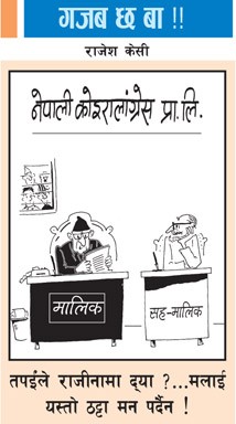 database, welcome to the Rajesh KC fan base. I agree with you. Rajesh KC is a creative cartoonist. His book as mentioned in this thread earlier (Rajesh KC ko cartoon sangraha bhag 1) carries his choicest 146 cartoons plus the praise he gets from famous cartoonist Durga Baral and writer Dr Abhi Subedi. Both praise him and give him high remarks in creativeness, quality, and pitchy captions.