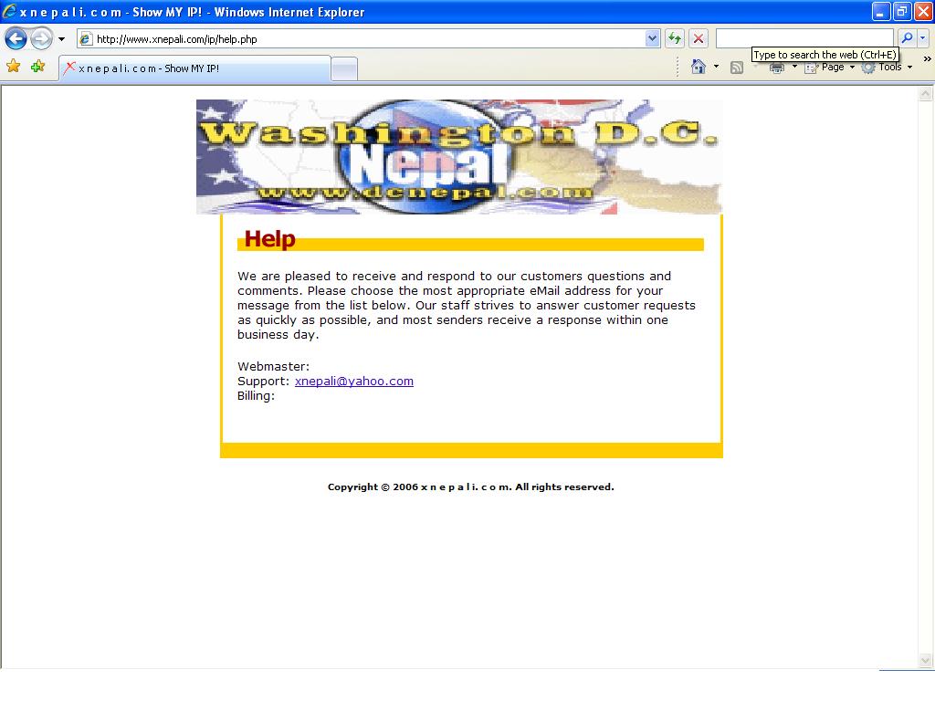 This is how the page looked like, until yesterday http://72.14.205.104/search?q=cache:6UG5ueqS8v0J:www.xnepali.com/ip/help.php+dcnepal+xnepali&hl=en&ct=clnk&cd=2&gl=us Source: Google Cache