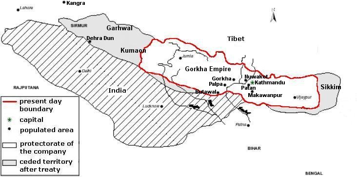 An ancient and medivel time, Nepal boundry used to be like that.... But after Rana Regime..... lost... http://www.greaternepal.com/publication.htm