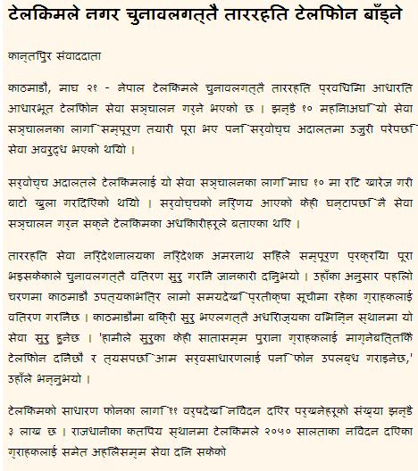NOTE: The opinions here represent the opinions of the individual posters, and not of Sajha.com. It is not possible for sajha.com to monitor all the postings, since sajha.com merely seeks to provide a cyber location for discussing ideas and concerns related to Nepal and the Nepalis. Please send an email to admin@sajha.com using a valid email address if you want any posting to be considered for deletion. Your request will be handled on a one to one basis. Sajha.com is a service please don't abuse it. - Thanks.