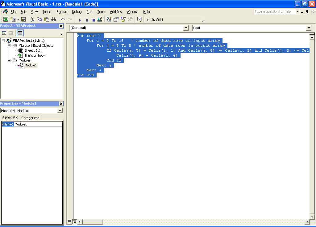 here is your macro bro! Sub test() For i = 2 To 13 ' number of data rows in input array For j = 2 To 8 ' number of data rows in output array If Cells(j, 7) = Cells(i, 1) And Cells(j, 8) >= Cells(i, 2) And Cells(j, 8) <= Cells(i, 3) Then Cells(j, 9) = Cells(i, 4) End If Next j Next i End Sub NOTE: you have to play with i and j values. this module works for the number you have put up in your first post. i'm attaching my excel snapshot. i guess you can go from there. if not email me and i can help. you have to change i, j and column values in IF statement as per the location of your tables. my best advice is try to match your spreadsheet as how i did. :) hope this helps.