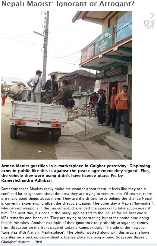 guys we need to show nepali people how these maoists are playing games behind our back. We sajha users know how these terrorists are.. but there are thousands and thousands of innocent nepalese out there who still think these maoists are for the good of the country. These people don't read news and obviously dont log on to the sajha to see how these terrorists are double faced.... We need to let each and every nepali know that Maoists are nothing more than freaking terrorists.