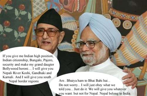 Fucche.. you are a Nepali. Not an Indian... You are dissatisfied with the state our country is in.. and u want people to realize the bitter truth.... Well, Nepal is not a part of India, but it is run by india. Every single decision made in nepal is first discussed with indian Leaders! WHat do you call that, right? Dude, u are smart..... i am totally against the current situation too.. I hate the Maoists more than i have my fifth grade teacher who slapped me for no reason one day. Terrorism Murdabad.