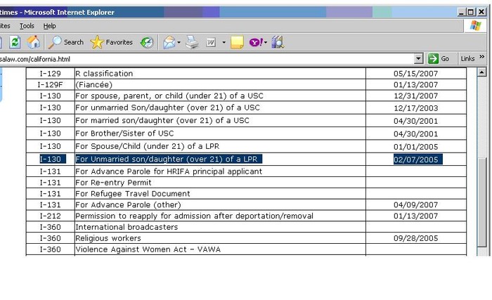 Does anyone here in Sajha have any information about filing form i-130, petition for unmarried son/daughter through a Permanent Resident of US? I always though that it will take about 10 years to get the green card through this process, but when I checked California Processing Center's website, I was confused to see that they are already processing applications for Feb 2005 which means that if I applied in 2007, I only have to wait 2 years? However, Sep Visa bulletin says that the processing time for Family Category 2B is 02/98? I guess, I'm not sure how it all works.....I would appreciate if anyone would like to share their knowledge. Thanks a lot!!!