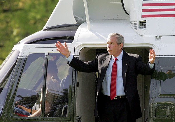 President Bush exits Marine One at the start of his four-hour visit to Washington's White House.