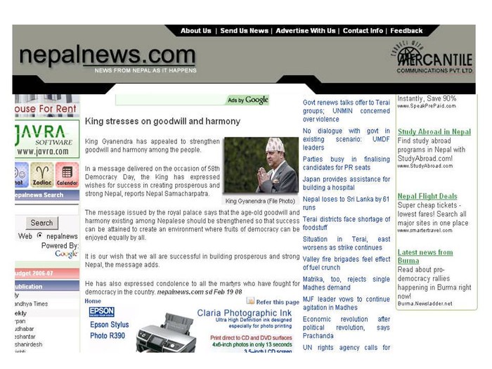 राजा ज्ञानेन्द्रद्वारा सन्देशमा भनिएको छ-'मुलुकको अखण्डता राष्ट्रियता तथा स्वतन्त्रतालाई अक्षुण्ण राख्दै सदियौंदेखि नेपाली-नेपालीबीच सद्भाव रहिआएको छ । त्यो सदभावलाई सुदृढ तुल्याएर प्रजातन्त्रको प्रतिफल सबैले समान रुपमा पाउने वातावरणका साथै समुन्नत र सबल नेपाल बनाउन हामी सबैलाई सफलता मिलोस् ।'