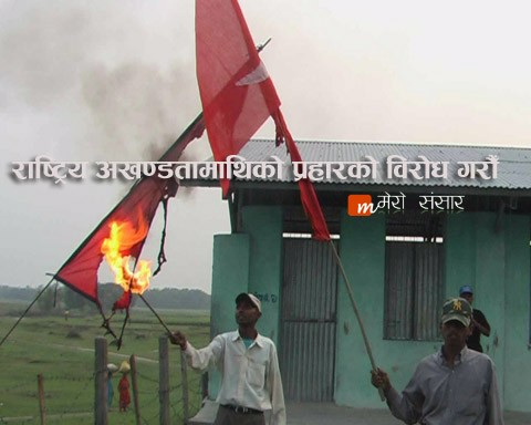 These Madeshi are Nepali too. And so called madeshi leader didn't spoke a word against them. Mind you this flag was burnt on their so called madeshi andolan.