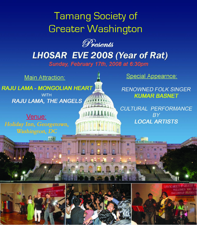 TAMANG SOCIETY OF GREATER WASHINGTON (TSGW) heartily invites all the Nepalese community members to join the Tamang Lhosar (New “Year of Rat”) Celebration 2008. (Limited Seats are available)