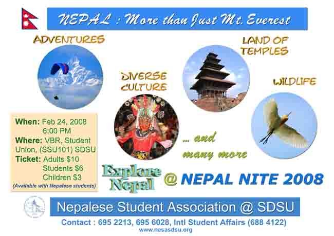 Nepalese Student Association (NeSA) @ South Dakota State University, Brookings, SD is organizing grand event of the year Nepal Nite 2008. Don't miss the opportunity to feel the home again at abroad.