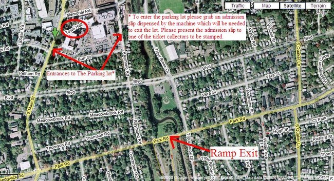 Or Take route I-684N then get on I-84E. Take exit 43. Take a left on the ramp light (park road). Take the first right on the light (Raymond road). The entrance to the parking lot appears to your left right after you cross Burr Street.