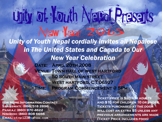 We would like to invite all Nepalese in the United States and Canada to our celebration of the New Year 2065