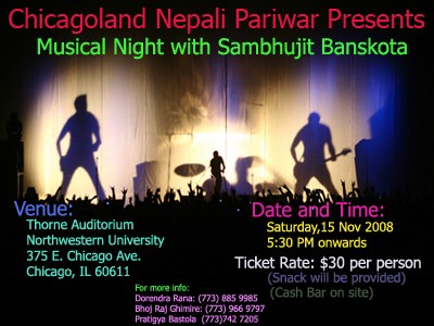For more information: Dorendra Rana: (773) 885 9985 Bhoj Raj Ghimire: (773) 966 9797 Pratigya Bastola:(773) 742 7205 -------------------------------------------------------------------------------------------- Warmest Regards. Chicagoland Nepali Pariwar NFP www.cnpariwar.org contact@cnpariwar.org