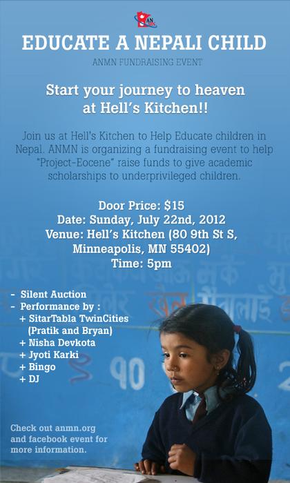 ANMN is organizing a fundraising event to help "Project-Eocene" raise funds to give academic scholarships to underprivileged children at Kalanki English Medium School in Nepal. The project aims to provide indigenous communities an opportunity to make their lives better and help children break free from the generational cycle of poverty.