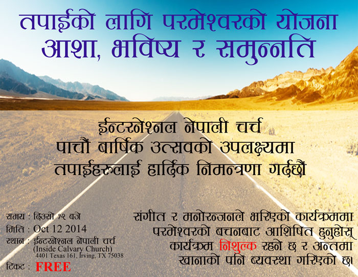 Come and join the celebration as we bring cultural programs in songs, dance, drama and inspirational messages.