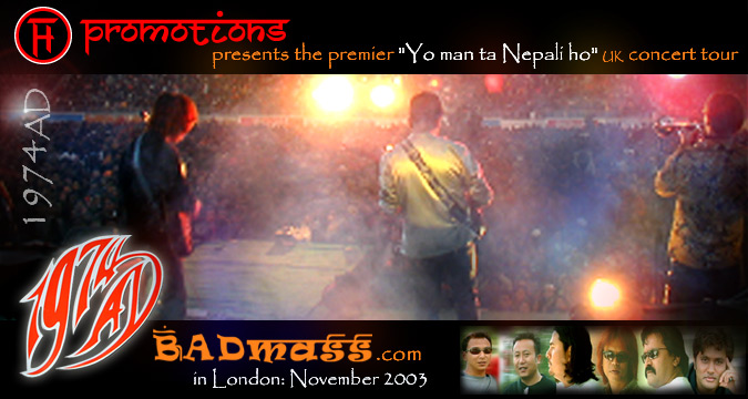 1974AD Live n Direct & BADmass in LondON H Promotions proudly presents It's SHOW TIME, I hope all of you are ready for Himalayas' finest 1974AD's historic first ever concert tour of the UK. It will also be first time when a six piece band from Nepal will be playing live in England. Be prepared for truly a unique and high voltage concert. You will be taken for a ride. Book in advance or come early or disappointed guaranteed. The dates are Saturday 8 November Reading Reading University Students' Union, Main Campus, Shinfield Rd, Whiteknights, Reading RG6 6AZ 2.00pm Sunday 9 November Woolwich Town Hall Wellington Street London SE18 6.30pm (7.00pm start) Rail: Woolwich Arsenal - 20 minutes from London Bridge Monday 10 November Ealing Town Hall Uxbridge Road, London W5 6.30pm (7.00pm start) Rail: Ealing Broadway - 9 minutes from Paddington Tube: Ealing Broadway - Central & District lines Ticket Price: £15 advance or £20 at the door