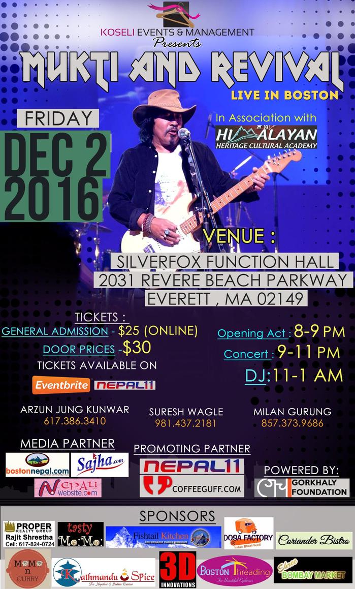 Tickets availble online:https://www.eventbrite.com/e/mukti-n-revival-live-in-boston-tickets-29127741860