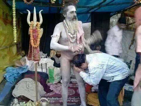 Don't tell me that you guys and gals here have never bowed down before a shiva linga. It's just that this man mistook the holy man for Shiva when he saw his ash-rubbed face and the trident.