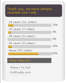1) 15 years - Unrealistically optimist 2) 30 years - Not very realistic. 3) 45 years - May be 4) 60 years - Realistic 5) Never - These people are just sick and tired. They've had it. They see no future for Nepal.